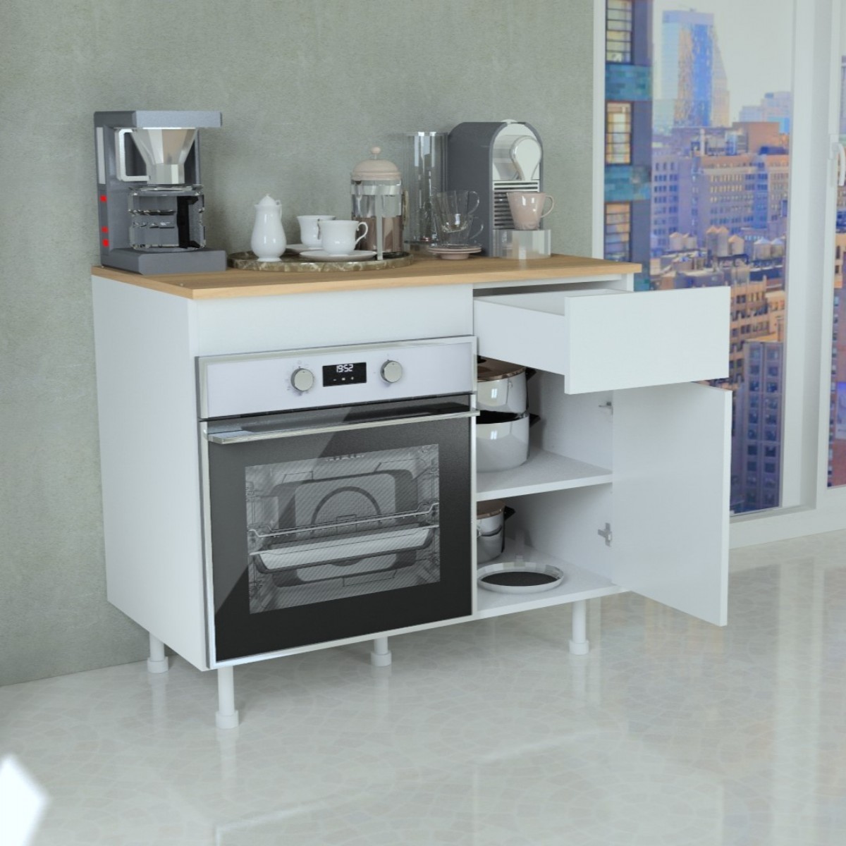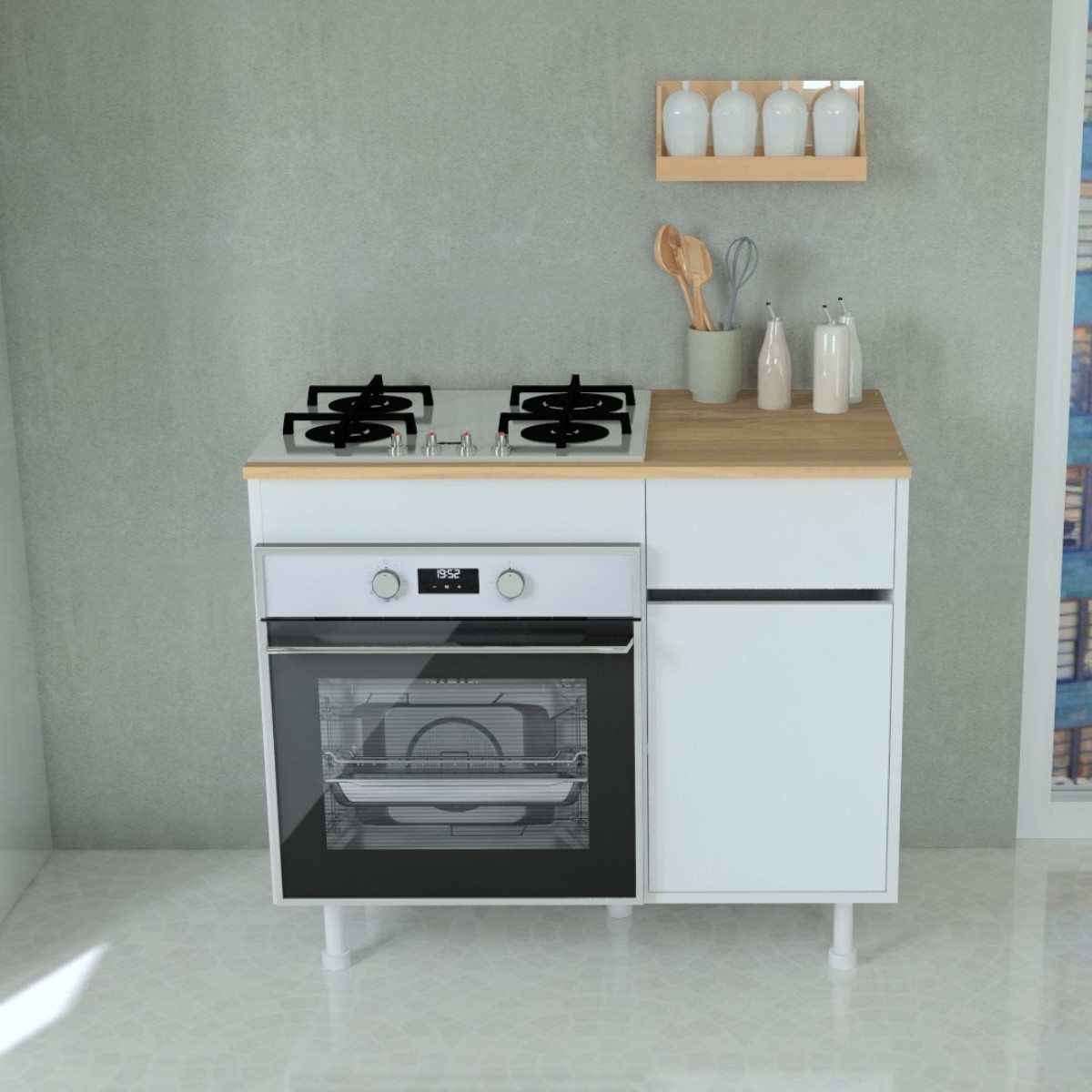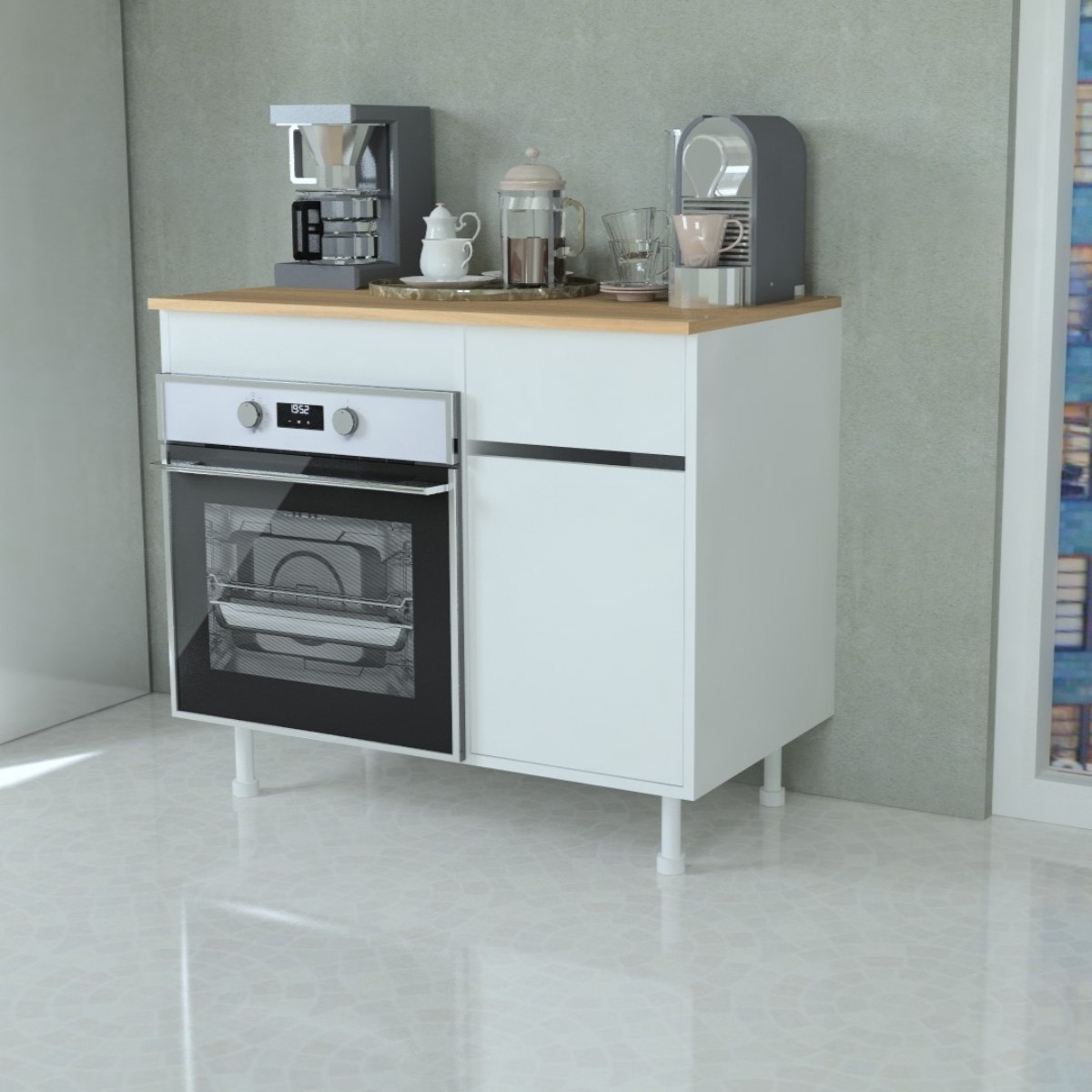 Dolabın üstündeki tabla Çam rengi suntalamdır. Üst tablada ocak deliği açmadan gönderiyoruz, kullanıma bağlı ocaklı veya ocaksız kullanıalbilir, ocak kullanmak isterseniz tablada delik açtırmanız gerekiyor.
