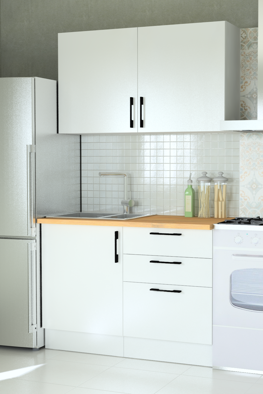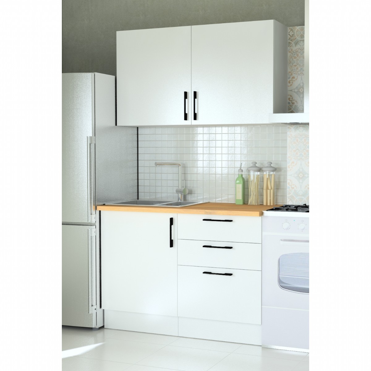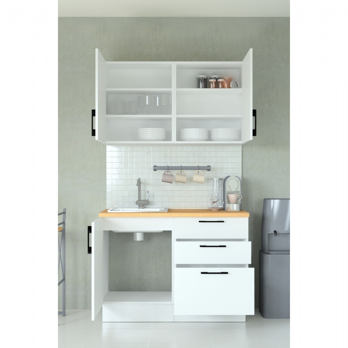120cm olan bu mutfağımız toplam 2 modülden oluşmakta (Alt ve Üst Modül)